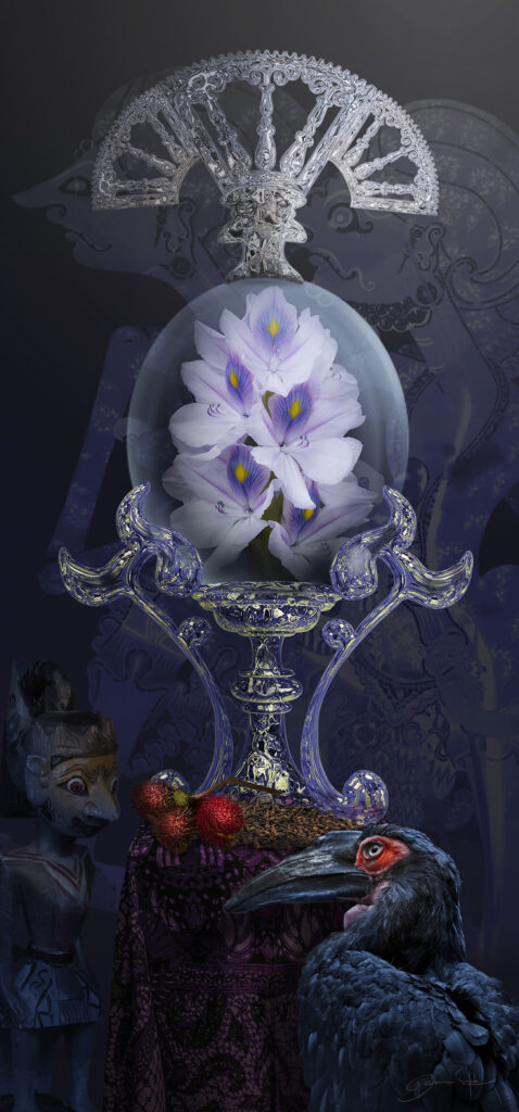 Galerie Wayang serie Schelpen Made for Heaven Portretten en kant Frozen Flowers Bloemen en textiel in samenwerking met Marion Karremans-Burger Indische triptiek in samenwerking met Dennis A-Tjak Trammetjes en gebouwen