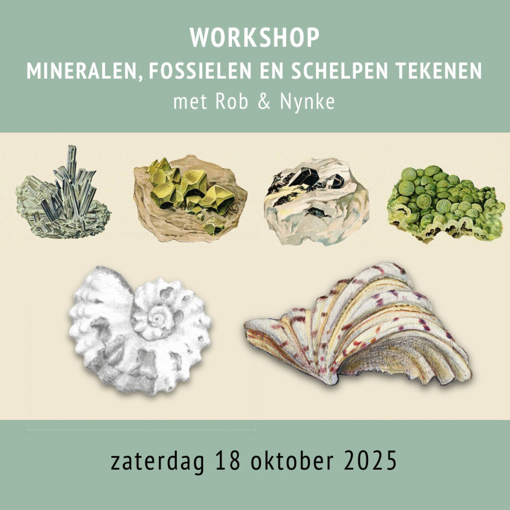 Mineralen, fossielen en schelpen tekenen